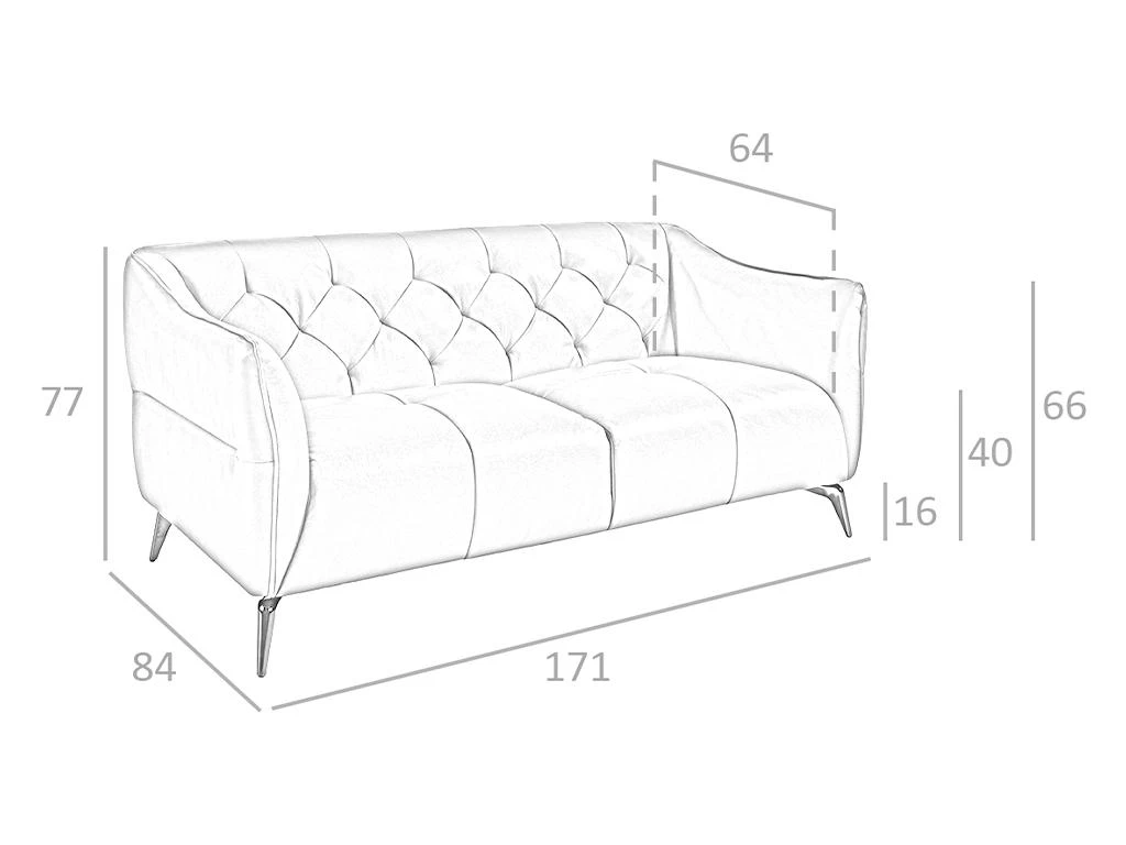 - DIMMENSIONS: La taille de ses sièges et son rembourrage en mousse de polyuréthane de 25 kg/m3 vous permettront de bénéficier d’un confort maximal, sans pour autant laisser de côté les dernières tendances. CARACTÉRISTIQUES : Son design à effet capitonné lui confère un style élégant et original, créant un espace cosy et personnel. Vous pouvez compléter le design de votre chambre avec le fauteuil et le canapé 3 places assortis.