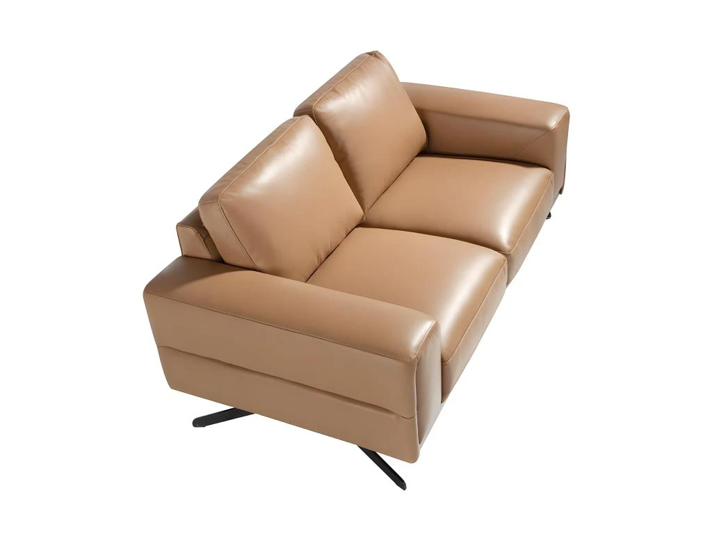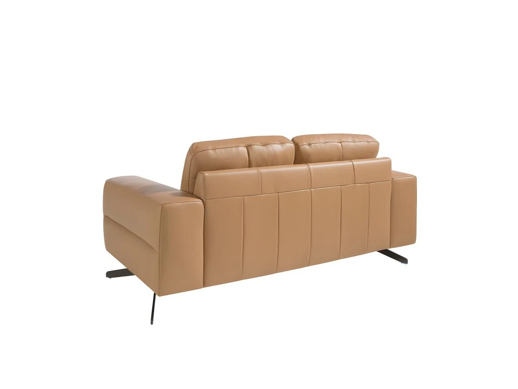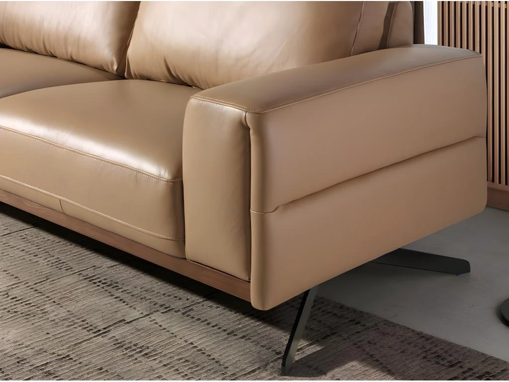 Canapé 2 places de design moderne tapissé en cuir d’origine bovine de 1,25 mm d’épaisseur couleur Arena. Structure de la base en chêne teinté noyer et pieds en acier inoxydable noir. Un canapé de style avant-gardiste et moderne, avec une structure interne robuste en bois de pin naturel et un rembourrage en mousse de polyuréthane d’une densité de 20 kg/m3, vous offre le confort supplémentaire et la commodité que vous recherchez pour votre repos. La combinaison parfaite de design, d’élégance et de confort