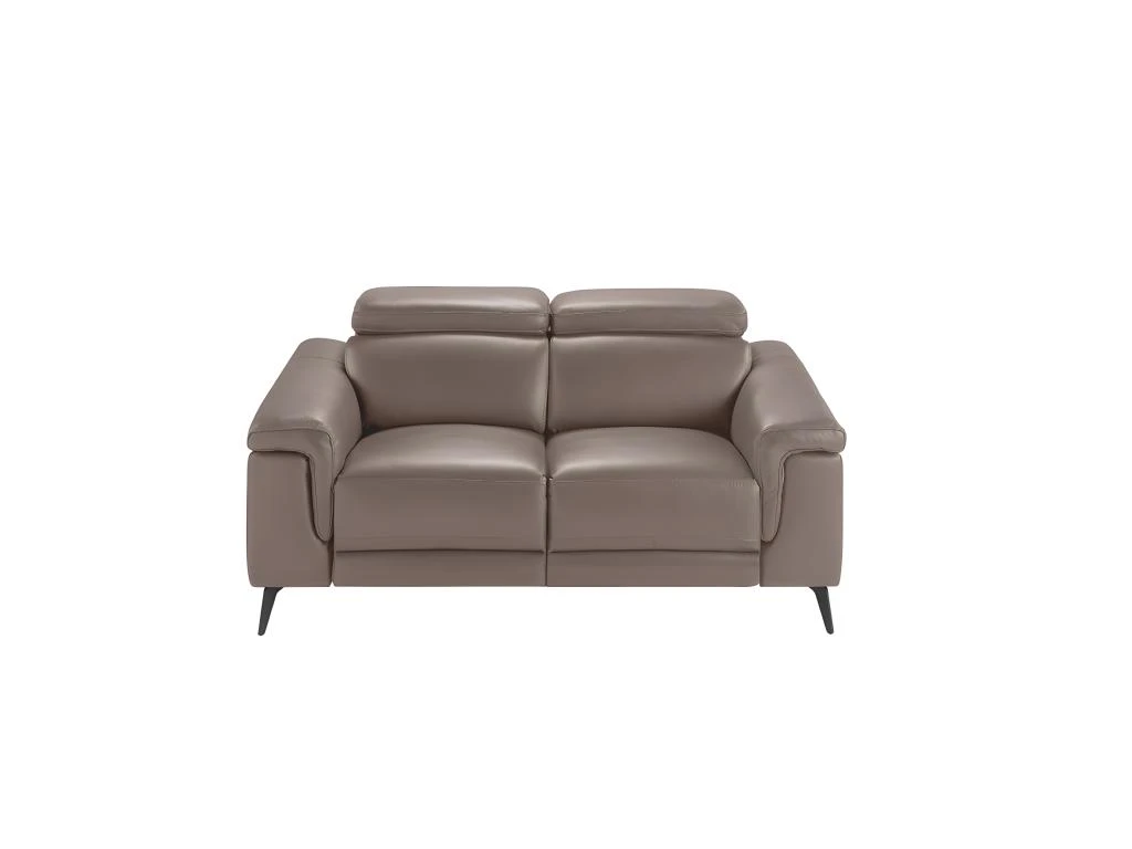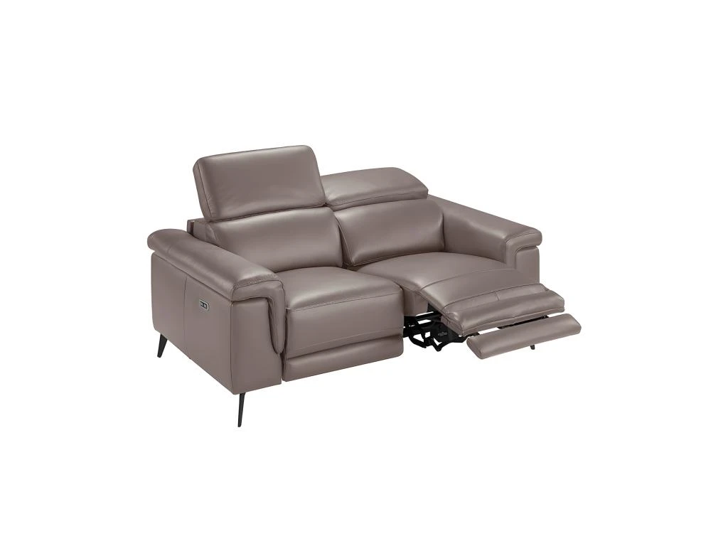 Canapé 2 places au design moderne, rembourré en cuir de vachette de 1 mm d’épaisseur, couleur vison, avec accoudoirs et appuie-tête indépendants et articulés. Un canapé de style avant-gardiste et moderne, avec une structure interne robuste en bois de pin naturel et des pieds en acier massif peints en époxy noir, ce qui lui donne la touche de tendance et d’élégance que vous recherchez pour votre salon. Son dossier et son assise en mousse polyuréthane de 20 kg/m3, ainsi que ses deux mécanismes de relaxation électriques, lui confèrent le confort supplémentaire dont vous avez besoin pour vous détendre