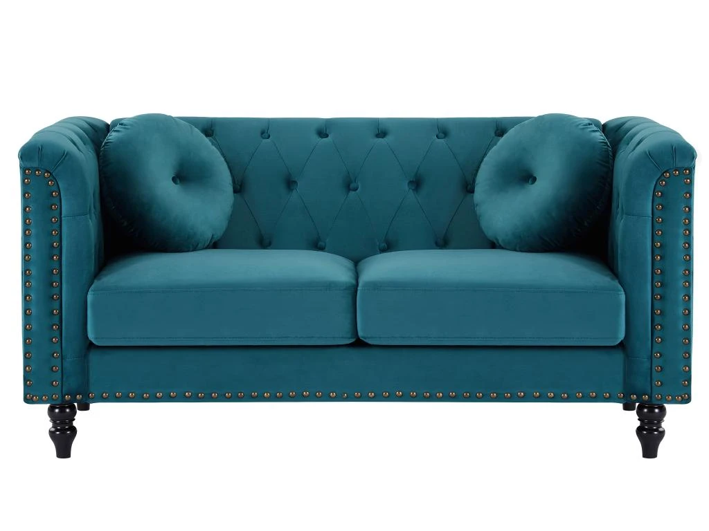 Envie d’une ambiance chaleureuse et vintage dans votre salon ? Le canapé TURNER sera votre canapé idéal. Inspiré du modèle mythique chesterfield, il apportera une touche vintage à votre intérieur. Son revêtement en velours ainsi que sa finition cloutée font de lui un canapé glamour qui donnera de la douceur et du cachet à votre pièce.