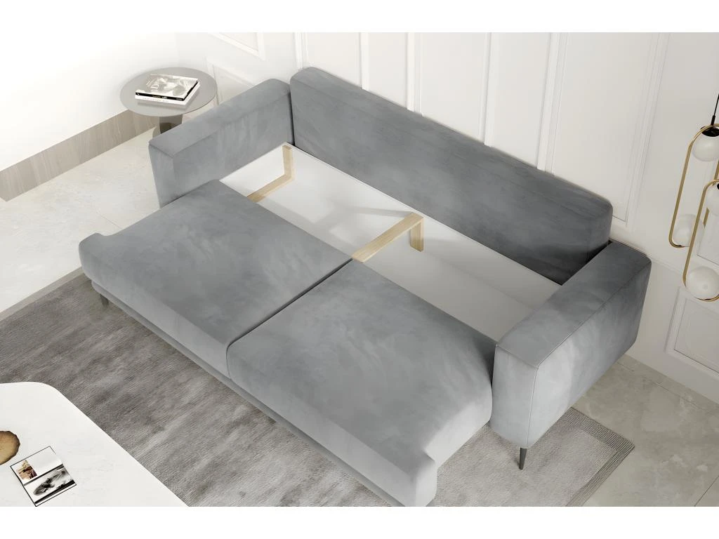 Très joli canapé 3 places en tissu de luxe, convertible – DANY. Avec espace de rangement. A la fois fonctionnel et très confortable. Large espace de couchage à ouverture facile. Tissu de grande qualité et doux au toucher et agréable. Tissu velours très doux et de la catégorie luxe. Assise très confortable grâce à la qualité du rembourrage. Très bonne qualité de fabrication. Fabrication européenne. Tissu de catégorie élevée.