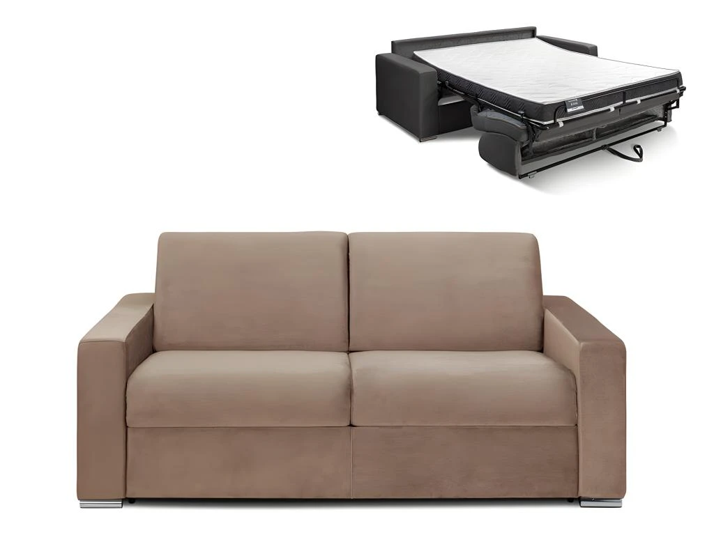 Vous souhaitez ajouter une touche d’élégance et de raffinement à votre intérieur ? Optez pour le canapé convertible en velours CALITO, confortable et esthétique qui saura sublimer votre intérieur. Le revêtement en velours confère au canapé une sensation de douceur et de luxe. Idéal pour accueillir des invités de manière spontanée ou pour créer un espace de repos supplémentaire en quelques instants, vous pourrez transformer ce canapé en lit en un clin d’œil. Les accoudoirs larges et moelleux ajoutent une dimension de confort supplémentaire à votre expérience de détente. Disponible en plusieurs largeurs pour s’adapter parfaitement à la taille de votre salon, ce canapé est également proposé avec différentes épaisseurs de matelas pour répondre à vos préférences en termes de fermeté.