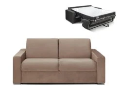 Vous souhaitez ajouter une touche d’élégance et de raffinement à votre intérieur ? Optez pour le canapé convertible en velours CALITO, confortable et esthétique qui saura sublimer votre intérieur. Le revêtement en velours confère au canapé une sensation de douceur et de luxe. Idéal pour accueillir des invités de manière spontanée ou pour créer un espace de repos supplémentaire en quelques instants, vous pourrez transformer ce canapé en lit en un clin d’œil. Les accoudoirs larges et moelleux ajoutent une dimension de confort supplémentaire à votre expérience de détente. Disponible en plusieurs largeurs pour s’adapter parfaitement à la taille de votre salon, ce canapé est également proposé avec différentes épaisseurs de matelas pour répondre à vos préférences en termes de fermeté.