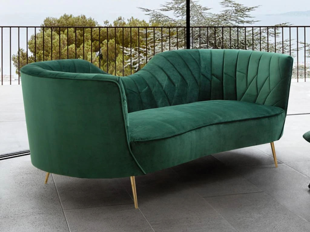 Avec ses pieds en métal doré, son dossier capitonné et incurvé, le canapé ADELE a été conçu pour vous offrir un maximum d’élégance !