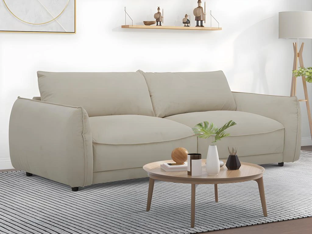 Ses coussins d’assise rembourrés vous offriront de longs moments de détente tandis que son revêtement en velours côtelé de haute qualité ajoute une note élégante au canapé.