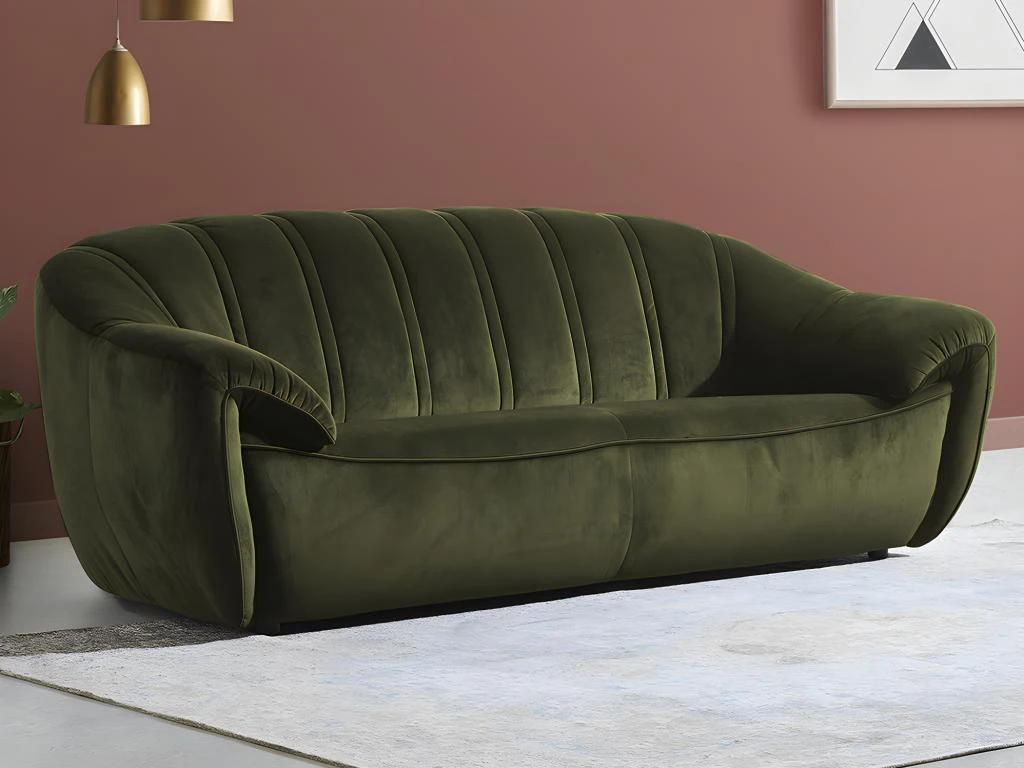 Avec ses formes arrondies, le canapé MALVITO reprend le style coquillage remis au goût du jour pour un look art déco
