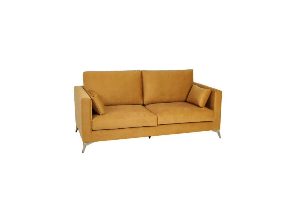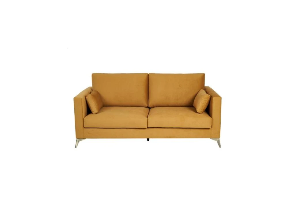 La belle qualité perçue de ce canapé se retrouve dans les moindres détails, ainsi mousses de qualité au confort équilibré, carcasse robuste faisant appel à du bois de Pin et belles proportions se combinent à un tissu couleur Moutarde épais et soyeux.