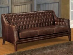 Canapé 3 Places 100% Cuir Supérieur VLADIMIR – Marron Vintage