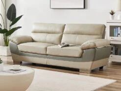Canapé 3 Places En Cuir FRANCESCA – Bicolore Marron Et Ivoire