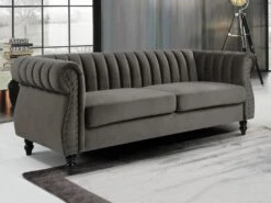 Canape Fixe 3 Places TYFA – Velours Vert Bouteille – L 231 X P 102 X H 78 Cm – HEXAGONE