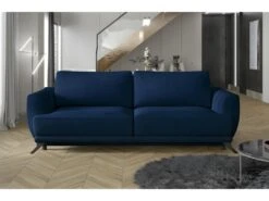 Canapé 3/4 Places Convertible – Bleu Foncé – En Tissu Velours De Qualité Luxe, MEGANE