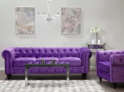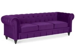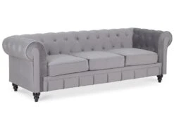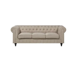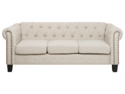 Canapé 3 Places En Tissu Beige Avec Pieds Droits CHESTERFIELD