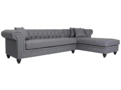 Canapé D’angle Capitonné Style Chesterfield Gustave Velours Bleu