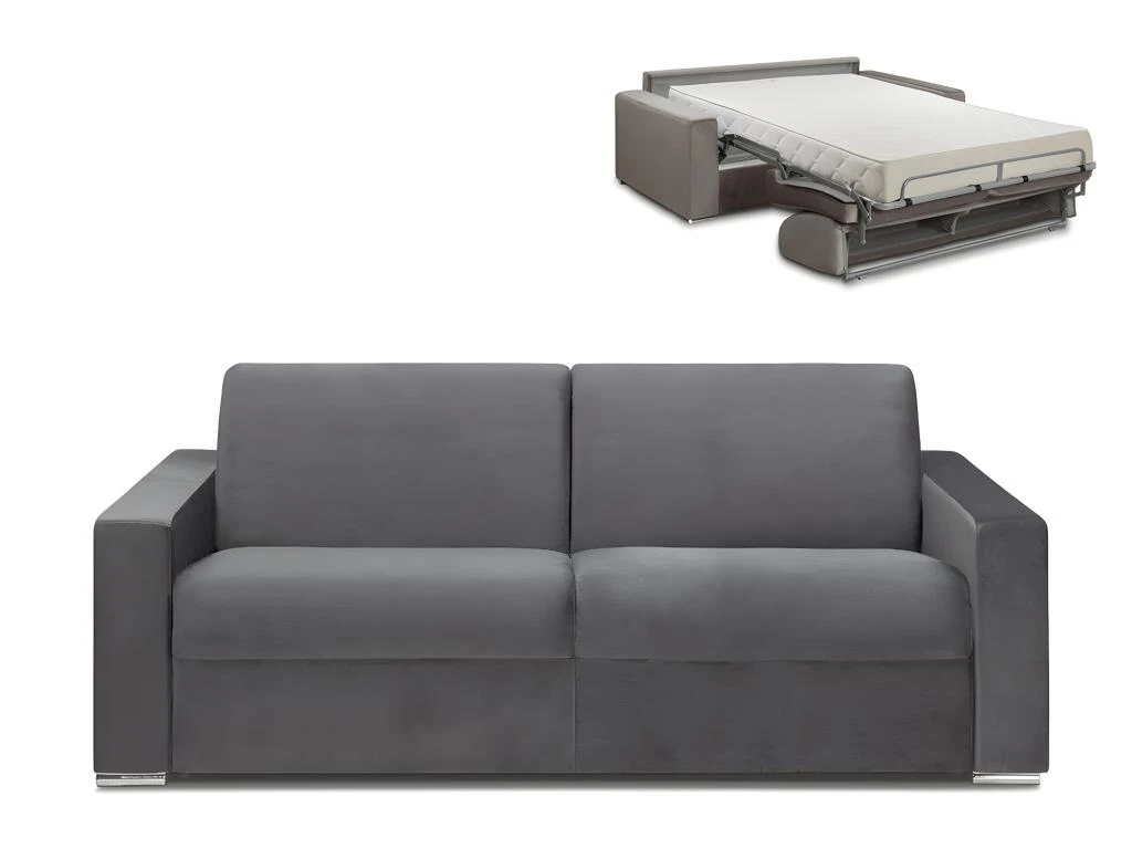 Vous souhaitez ajouter une touche d’élégance et de raffinement à votre intérieur ? Optez pour le canapé convertible en velours CALITO, confortable et esthétique qui saura sublimer votre intérieur. Le revêtement en velours confère au canapé une sensation de douceur et de luxe. Idéal pour accueillir des invités de manière spontanée ou pour créer un espace de repos supplémentaire en quelques instants, vous pourrez transformer ce canapé en lit en un clin d’œil. Les accoudoirs larges et moelleux ajoutent une dimension de confort supplémentaire à votre expérience de détente. Disponible en plusieurs largeurs pour s’adapter parfaitement à la taille de votre salon, ce canapé est également proposé avec différentes épaisseurs de matelas pour répondre à vos préférences en termes de fermeté.