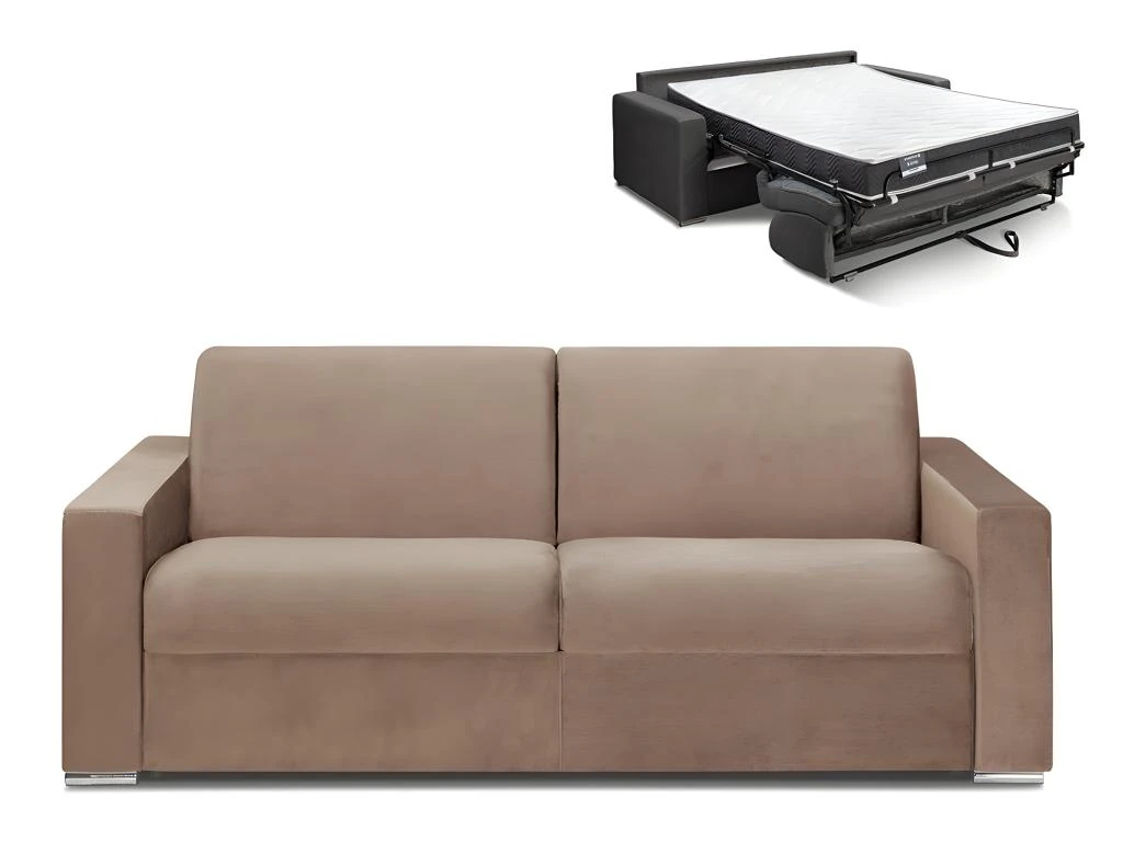 Vous souhaitez ajouter une touche d’élégance et de raffinement à votre intérieur ? Optez pour le canapé convertible en velours CALITO, confortable et esthétique qui saura sublimer votre intérieur. Le revêtement en velours confère au canapé une sensation de douceur et de luxe. Idéal pour accueillir des invités de manière spontanée ou pour créer un espace de repos supplémentaire en quelques instants, vous pourrez transformer ce canapé en lit en un clin d’œil. Les accoudoirs larges et moelleux ajoutent une dimension de confort supplémentaire à votre expérience de détente. Disponible en plusieurs largeurs pour s’adapter parfaitement à la taille de votre salon, ce canapé est également proposé avec différentes épaisseurs de matelas pour répondre à vos préférences en termes de fermeté.