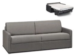 Canapé 4 Places Convertible Express En Tissu CALIFE – Gris – Couchage 160 Cm – Matelas 18 Cm
