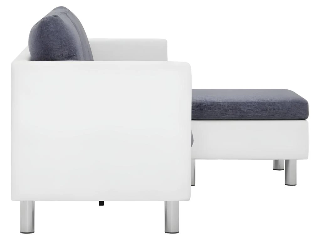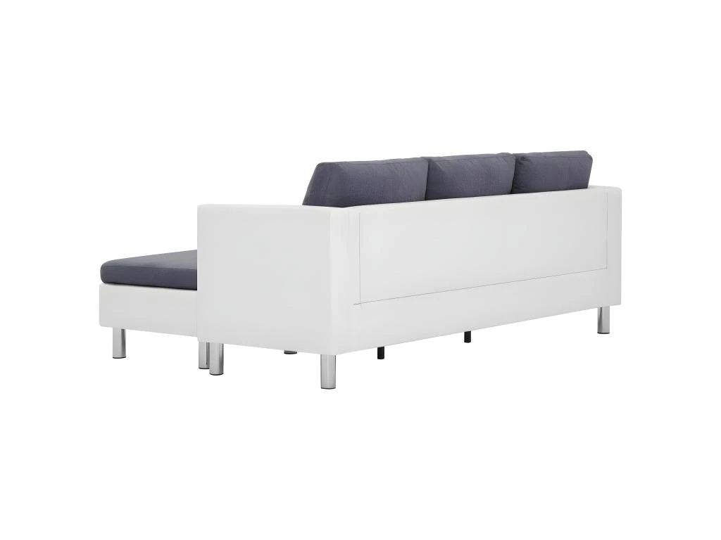 Ce canapé dispose de larges sièges et de coussins rembourrés pour un confort d’assise optimal. L’ensemble de sofa est tapissé avec le cuir artificiel brillant et durable, qui le rend facile à nettoyer. Les coins sont solidement construits et ont des pieds de fer durables et chromés. Ce canapé sectionnel polyvalent dispose d’une chaise longue qui peut être placée de chaque côté de la causeuse, ce qui en fait un excellent choix pour de nombreuses configurations de salon.