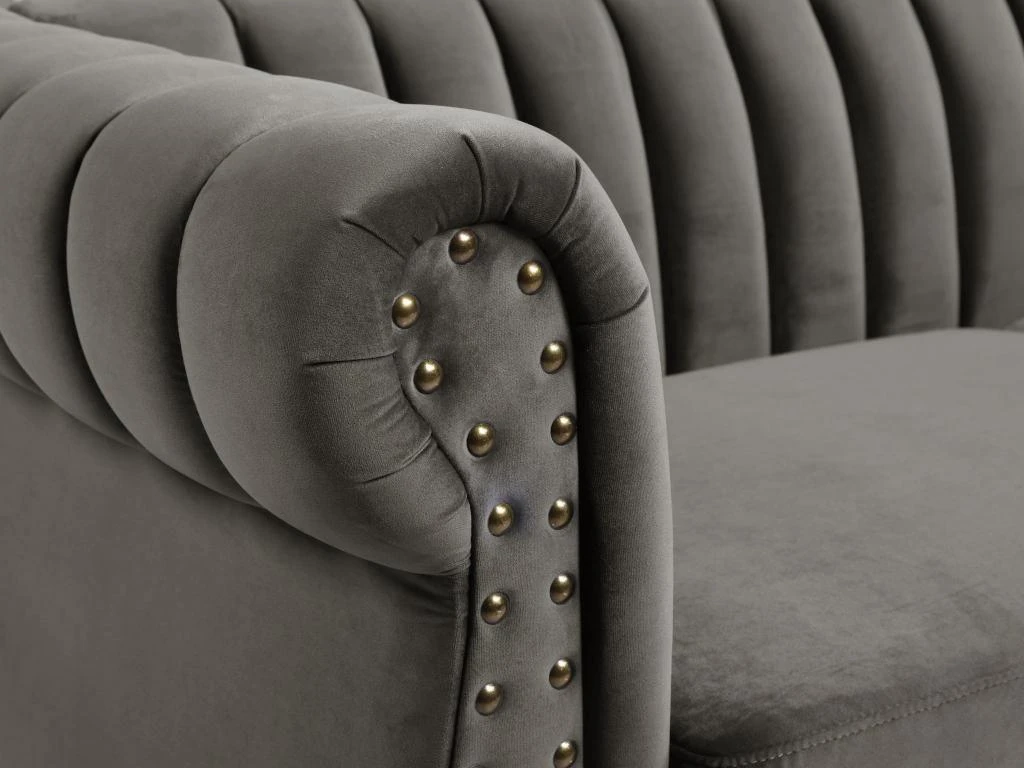 Besoin d’un canapé qui sorte de l’ordinaire ? Le canapé TRUMBO est fait pour vous. Alliant charme et élégance, le canapé TRUMBO deviendra vite la pièce maîtresse de votre salon grâce à son revêtement en velours strié et ses finitions cloutées.