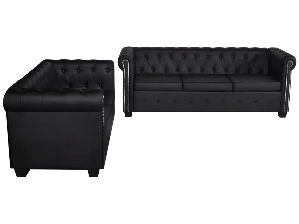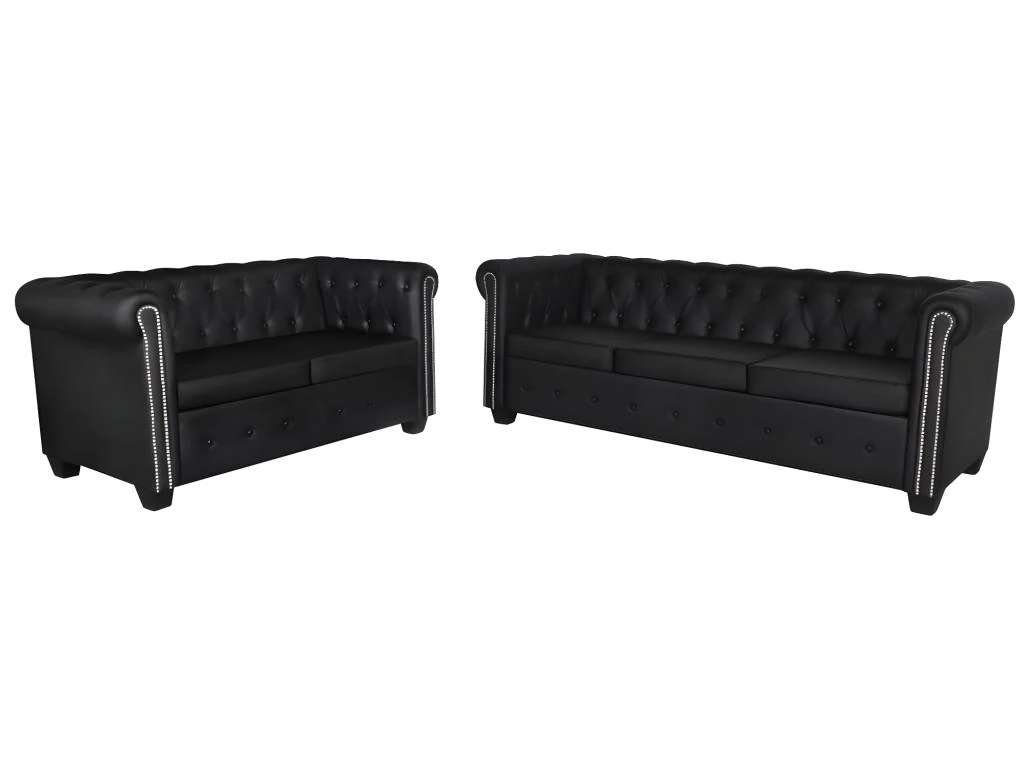 Cet ensemble de canapés de Chesterfield, composé de 2 et 3 places, est la combinaison parfaite de confort et d’élégance et sera un excellent ajout à tout décor de maison ou de bureau. Cet ensemble de canapés à 2 et 3 places, avec ses détails à touffes et à clous et ses accoudoirs courbés, va ajouter une touche de luxe, de classe et de style à tout décor intérieur.