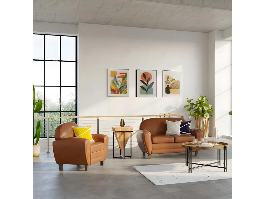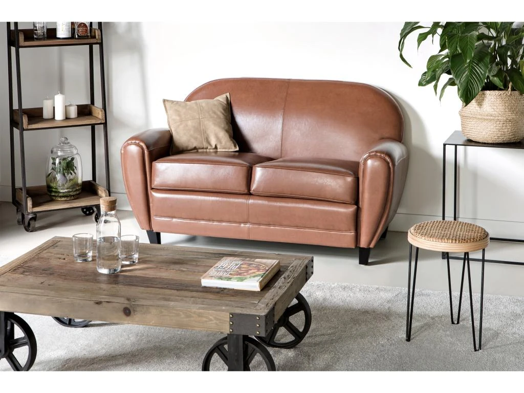 Optez pour un classique, optez pour un canapé Club 2 places croüte de cuir enduite camel !