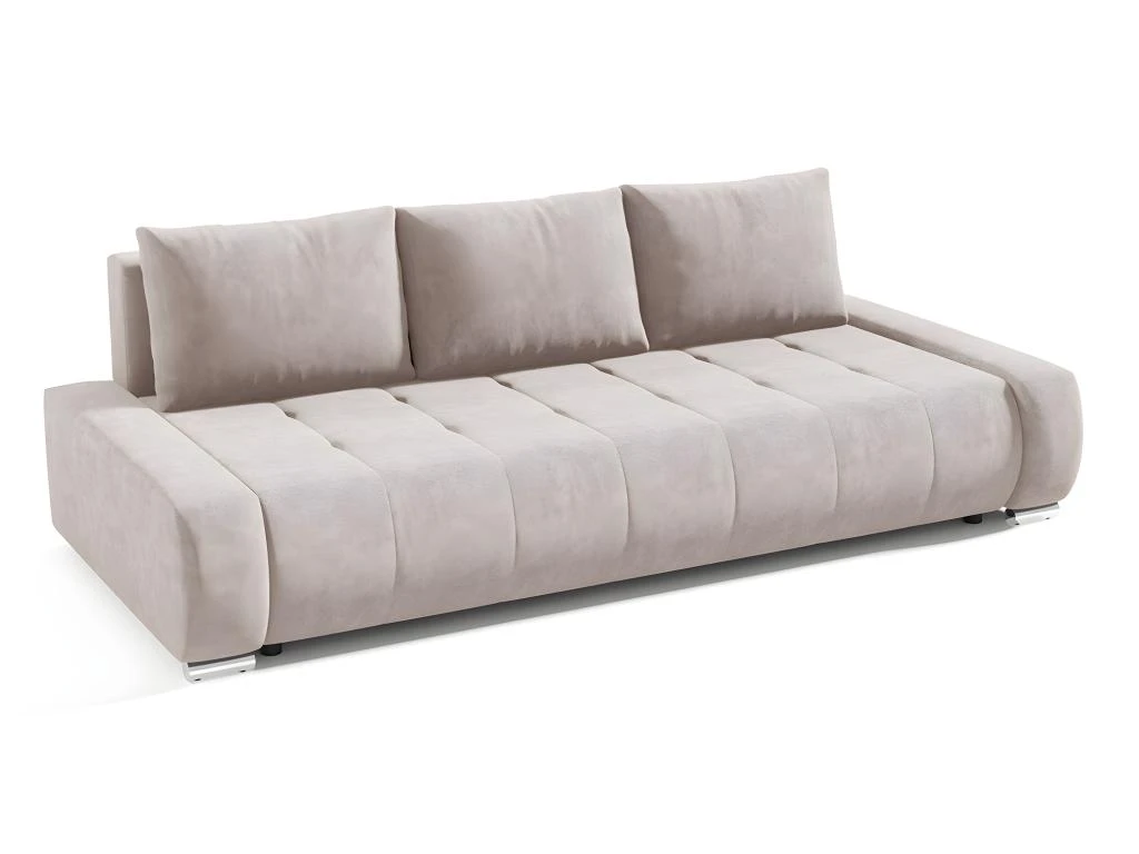 Caractéristiques : Canapé 3 places – Convertible en lit d’appoint – Système de dépliage : avance de l’assise et bascule du dossier – Coffre de rangement : poids maximum 8kg – 3 coussins de dossier – 2 coussins décoratif non inclus