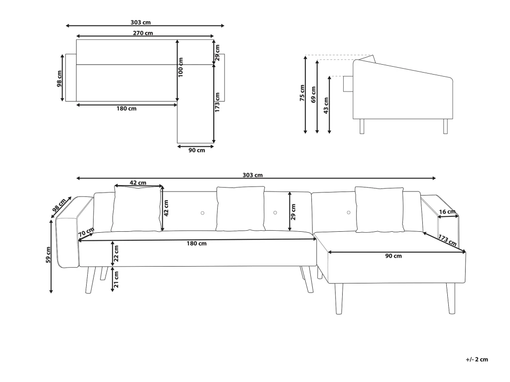 L`offre inclue: 1 x Canapé d’angle, 3 x Oreiller
