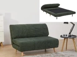 Canapé 2 Places Convertible En Velours Côtelé PALULA – Vert Foncé