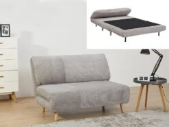 Canapé 2 Places Convertible Express En Tissu CALIFE – Gris Clair – Couchage 120 Cm – Matelas 18 Cm