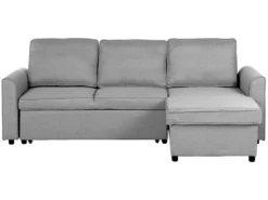 Canapé Angle Côté Gauche Convertible En Tissu Gris Clair 3 Places NESNA