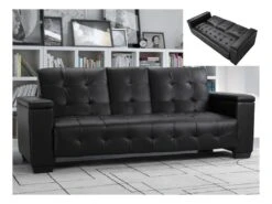 Canapé 3 Places Clic-clac En Simili DEVONSHIRE Avec Tablette Centrale Rabattable – Noir