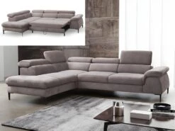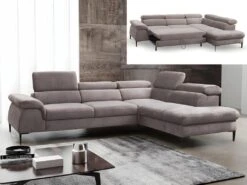 Canapé Grand Angle Convertible En Velours Taupe SEPINA De PASCAL MORABITO – Angle Droit