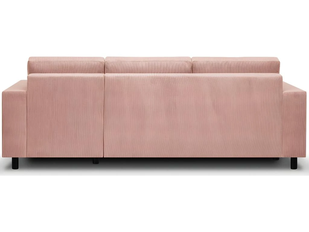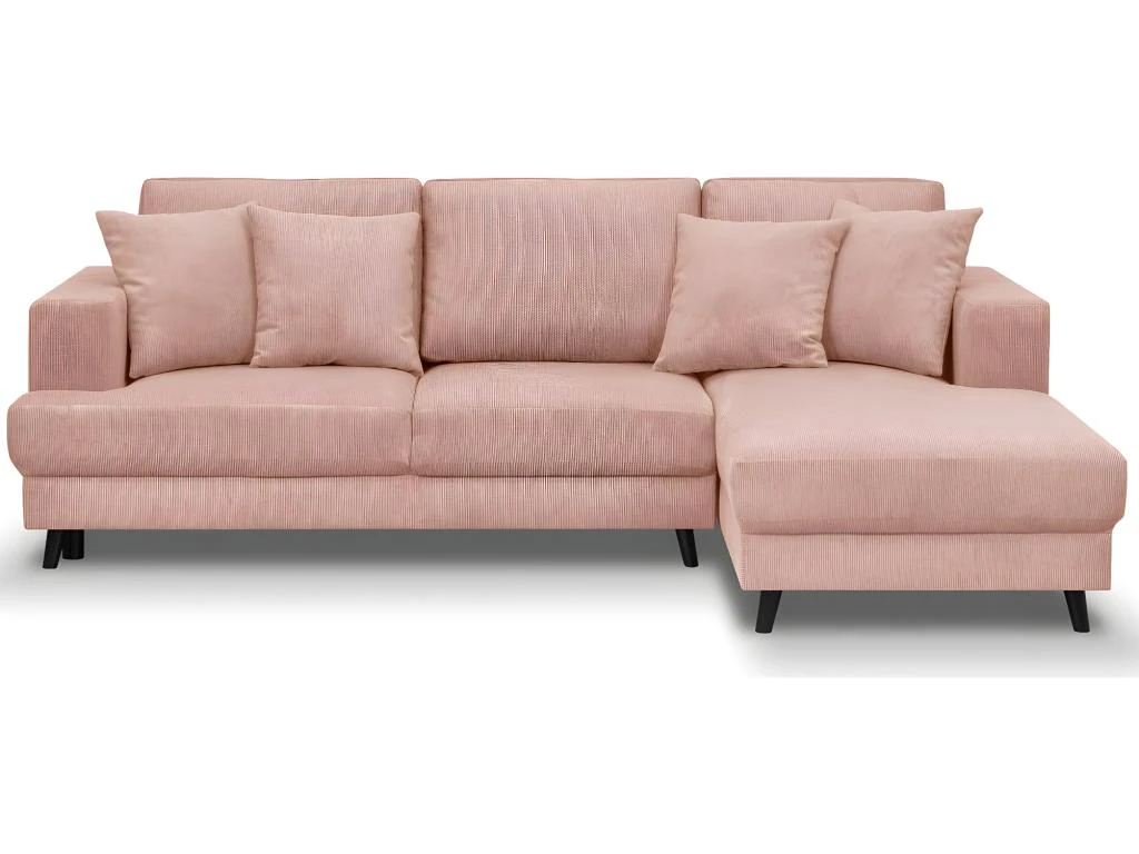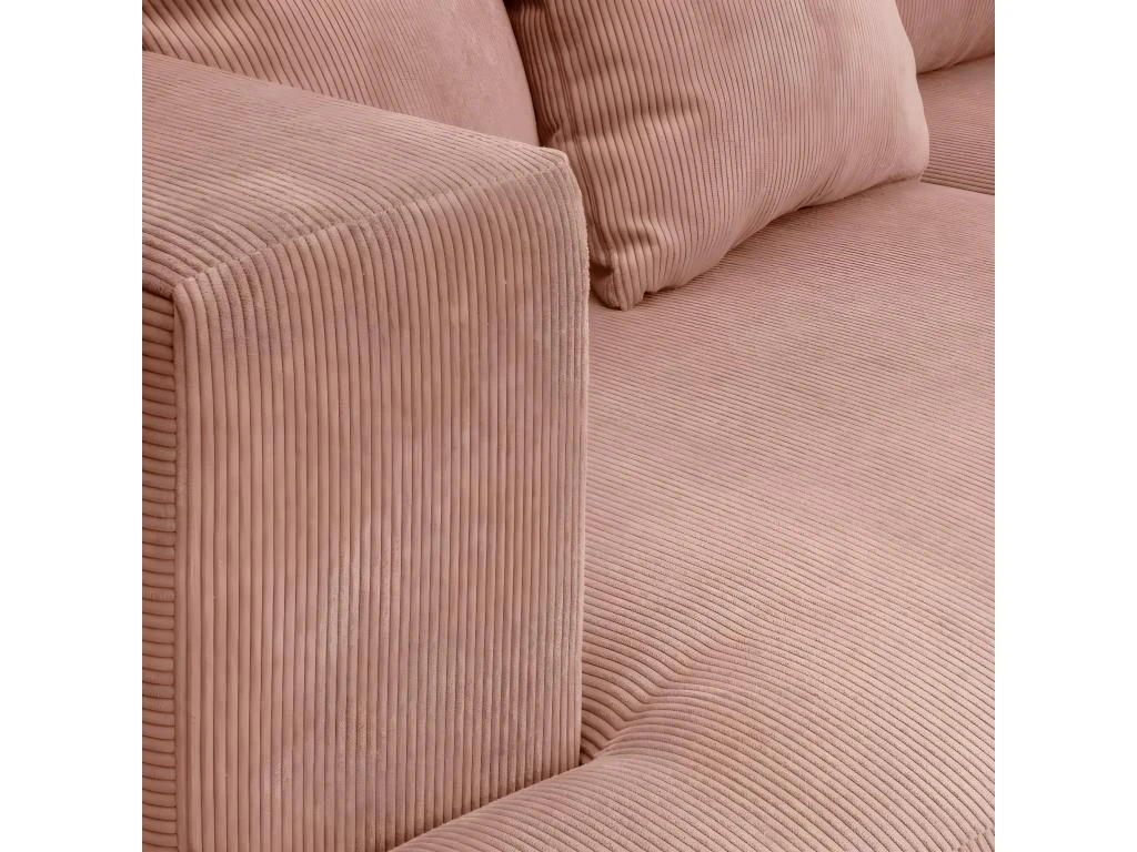 • Canapé d’angle convertible Marceau 4 places en velours côtelé rose pâle avec coffre de rangement
