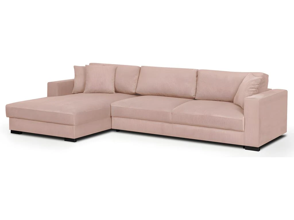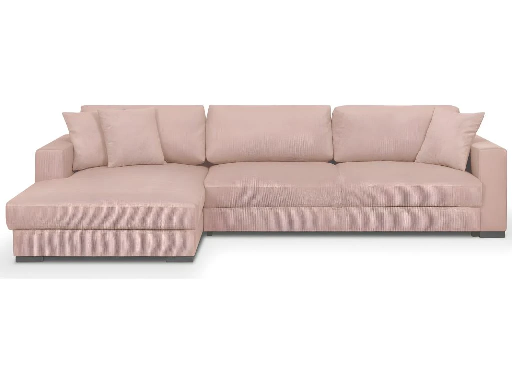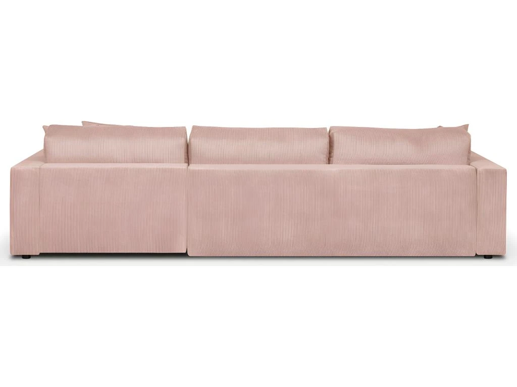 Canapé d’angle convertible Robin 5 places en velours rose pâle avec coffre de rangement