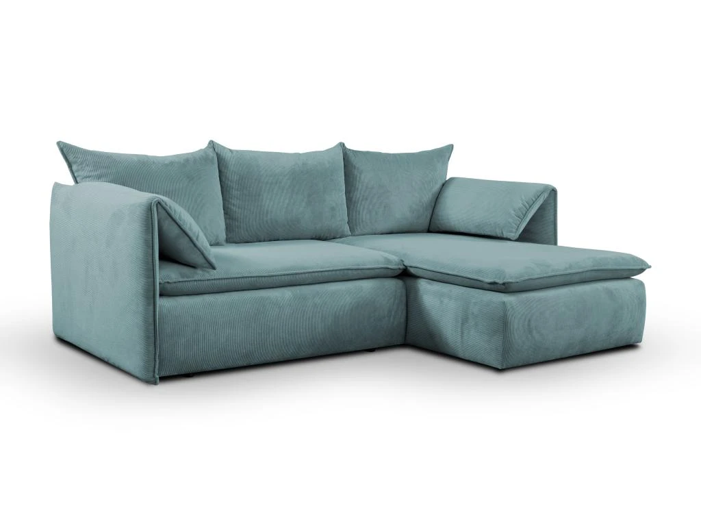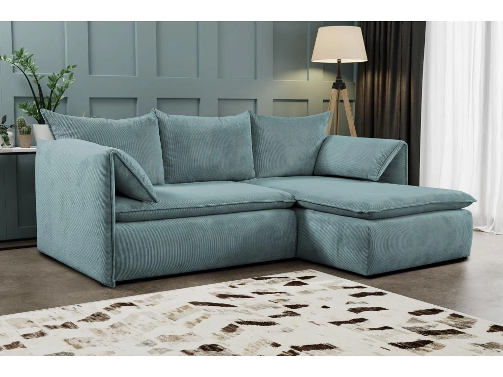 Idéal pour les petits espaces, le canapé d’angle convertible TEODORA deviendra rapidement une pièce maîtresse de votre salon grâce à la douceur de son velours côtelé, son look tendance souligné par ses accoudoirs fins relevables et à son aspect pratique. Vous allez adorer vous y prélasser ! Convertible et doté d’un coffre de rangement sous l’assise, ce modèle sera très utile au quotidien pour ranger draps, oreillers ou couettes.
