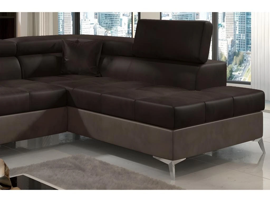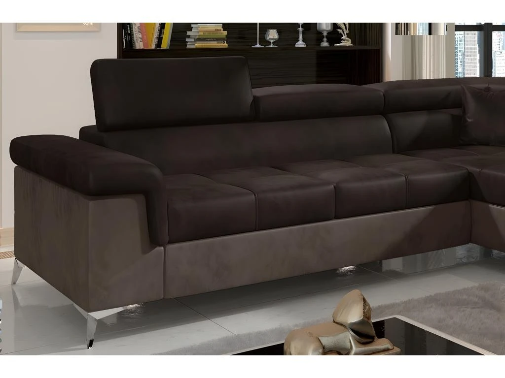 Ce superbe canapé d’angle convertible en tissu de haute qualité – ERIKA – C’est le parfait moyen pour réussir sa décoration intérieure et profiter d’un confort très agréable. Confort et design élégant ainsi que son grand espace de couchage sont les atouts de ce canapé pour combler les plus exigeants. Ce canapé d’angle de style contemporain conçu pour répondre aux plus hauts niveaux de confort. Tissu velours très doux et de la catégorie luxe. Assise très confortable grâce à son excellent rembourrage. Très bonne qualité de fabrication. Fabrication européenne. Tissu de la catégorie la plus élevée. Avec ses jolis pieds en métal chromé poli. L’assise spacieuse, le dossier ergonomique avec appuie-tête réglables et un large accoudoir vous procureront des moments de détente dans le plus grand confort.