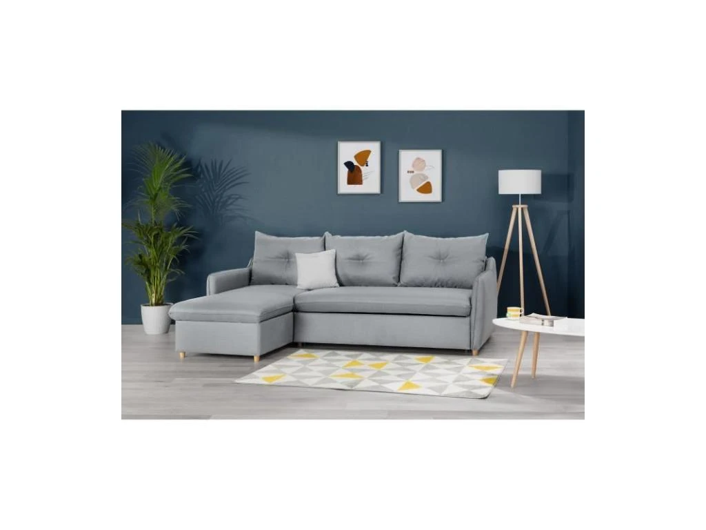 Canapé Panoramique Scandinave Convertible 2 Coffres En Tissu Déperlant