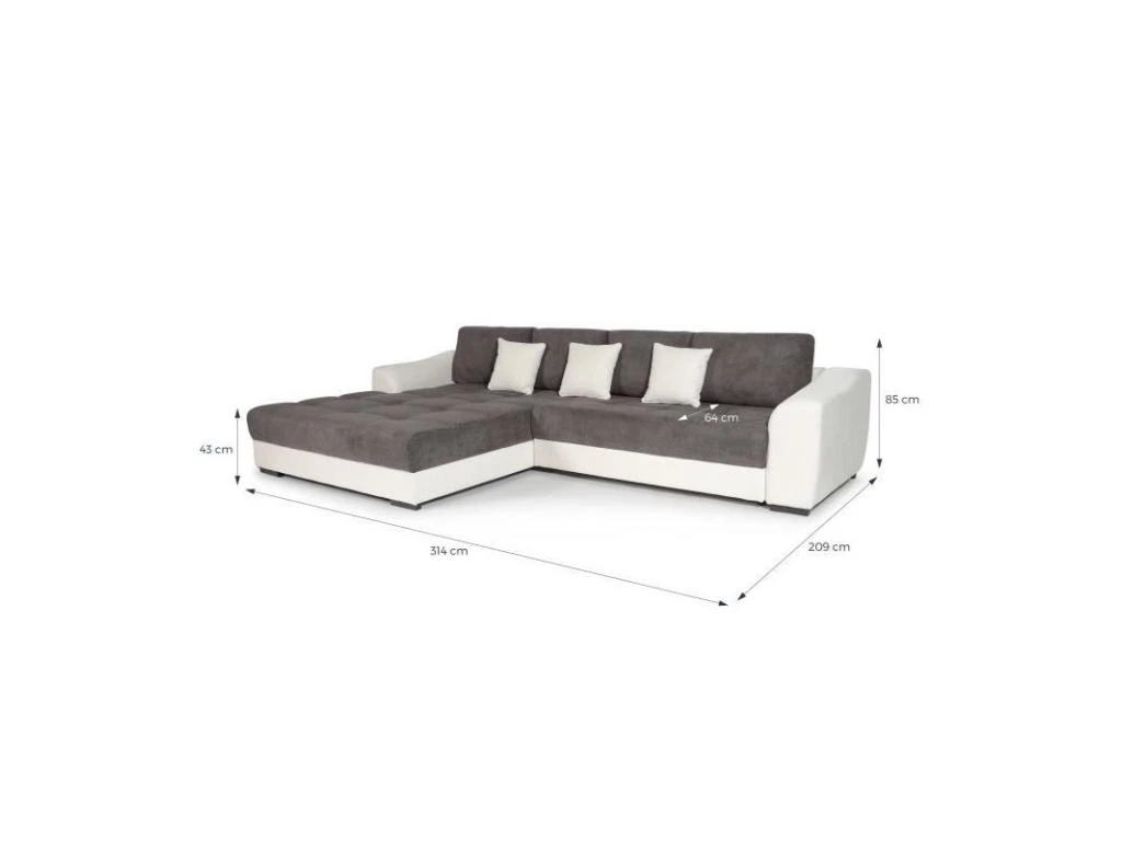 Canapé D’angle Réversible Et Convertible 3 Places Avec Coffre Robin Velours Côtelé Gris