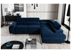 Très beau canapé d’angle convertible en tissu de qualité – LARRY – Très confortable avec son assise de grande qualité. Bel espace de couchage et son coffre de rangement. Tissu de catégorie Luxe haute qualité. Très belle qualité de fabrication européenne.