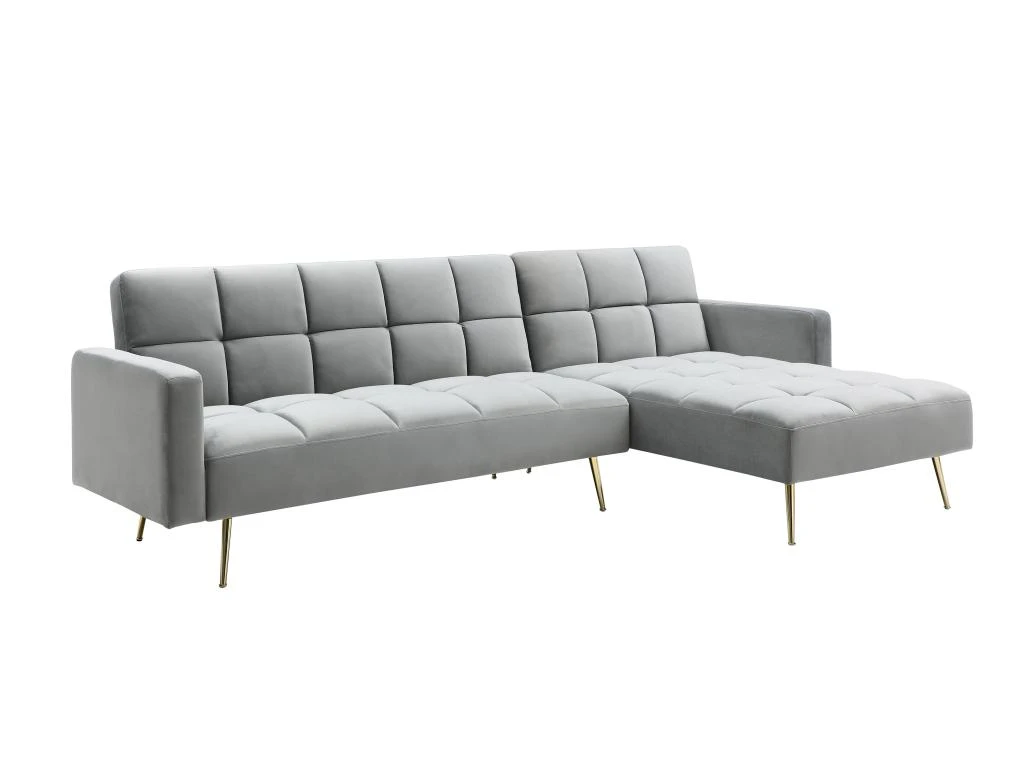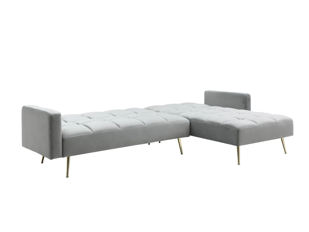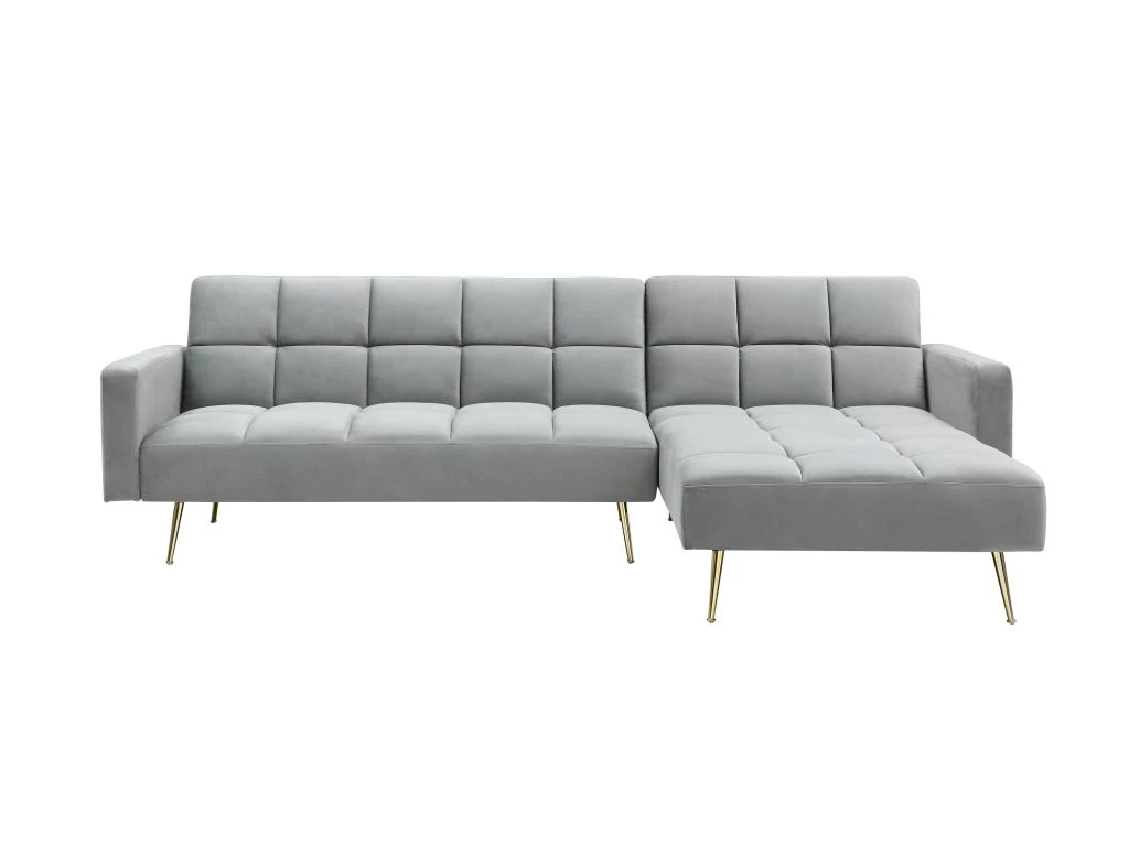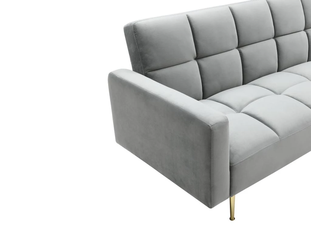 Vous souhaitez transformer votre intérieur avec élégance et fonctionnalité ? Cédez à la tentation du canapé convertible réversible clic-clac en velours NIETO. Son style Art Déco réhaussé d’un piètement en métal doré apportera une touche élégante à votre espace, tout en offrant une solution pratique pour accueillir vos invités. L’effet matelassé de ce canapé ajoute un esthétisme et un confort idéal à l’assise !