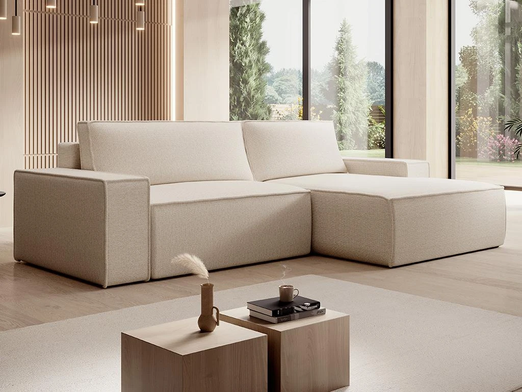 Vous recherchez le canapé parfait qui combine fonctionnalité, esthétisme et confort ? Découvrez notre canapé d’angle convertible AMELIA. Vous serez charmé par son élégance grâce à son revêtement en tissu texturé qui apporte légèreté à l’assise ! De plus, son coffre de rangement intégré constitue une solution pratique pour l’organisation de votre espace. Enfin, grâce à sa fonction convertible, votre salon se métamorphosera en chambre à coucher pour votre famille ou bien vos amis.