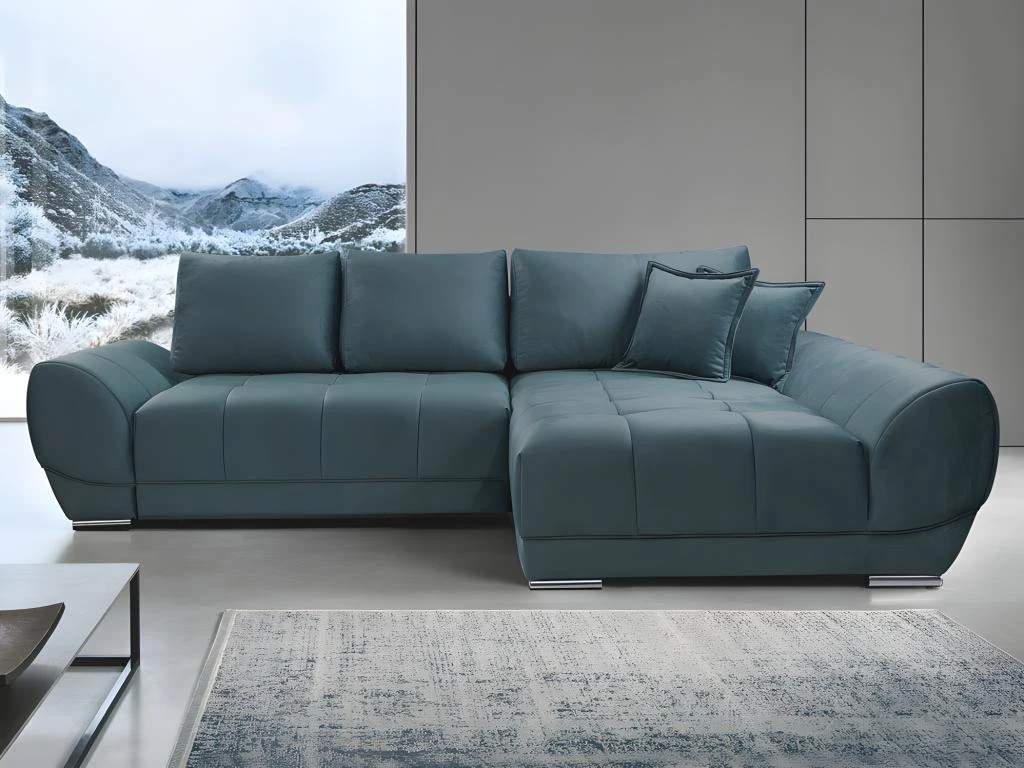 Vous avez envie d’un canapé avec une assise capitonnée ? Ne cherchez plus et succombez au charme du canapé PADRU ! Son look contemporain et ses pieds en métal lui donnent un aspect moderne tandis que son revêtement en velours vous offrira la douceur que vous recherchez. Vous pourrez transformer le canapé PADRU en un couchage de manière simple et rapide grâce à son mécanisme convertible. Profitez également de ses coussins additionnels et de son coffre de rangement situé sous l’assise.