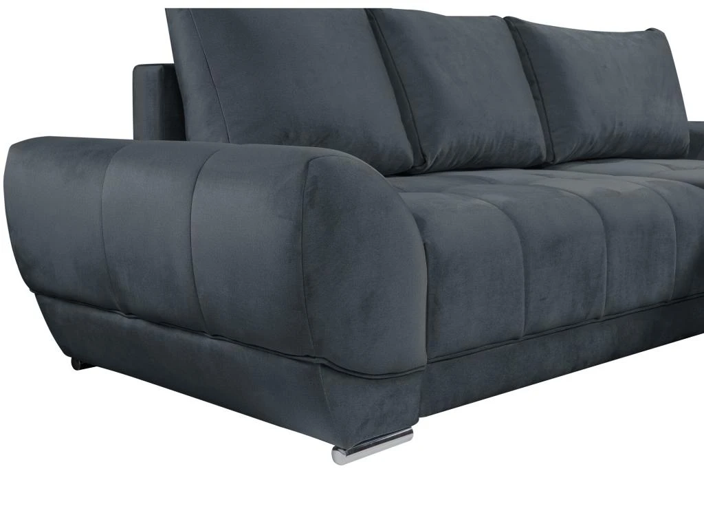 Vous avez envie d’un canapé avec une assise capitonnée ? Ne cherchez plus et succombez au charme du canapé PADRU ! Son look contemporain et ses pieds en métal lui donnent un aspect moderne tandis que son revêtement en velours vous offrira la douceur que vous recherchez. Vous pourrez transformer le canapé PADRU en un couchage de manière simple et rapide grâce à son mécanisme convertible. Profitez également de ses coussins additionnels et de son coffre de rangement situé sous l’assise.