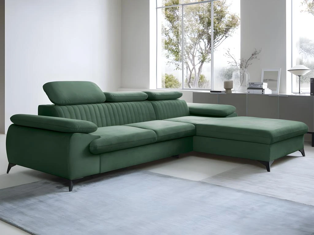 Vous recherchez un canapé à la fois chaleureux et moderne ? Optez pour le canapé convertible SAMARA ! Avec son revêtement en velours et ses têtières amovibles, le canapé d’angle SAMARA est la pièce parfaite pour votre salon si vous avez envie d’un canapé qui vous permette de passer de longs moments de détente tout en ajoutant une touche de design à votre intérieur.