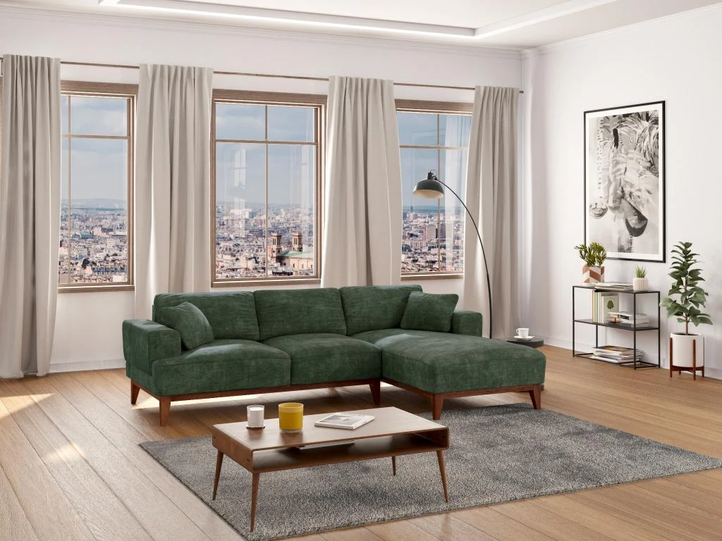 Vous recherchez comment rendre votre intérieur chic ? Optez pour le canapé d’angle JOSEFA. Des pieds en bois, une assise profonde et acceuillante et des coloris très tendances apportent à ce canapé d’angle en tissu tout ce dont il a besoin pour sublimer votre salon.
