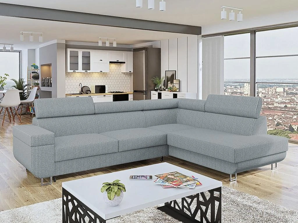 Les + produits : – Coffre de rangement-Appuis-tête réglables – Canapé avec fonction lit- Style contemporain.