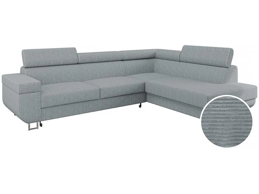 Descriptif : Canapé d’angle Fonti en velours côtelé – 5 places – Angle droit – Gris.
