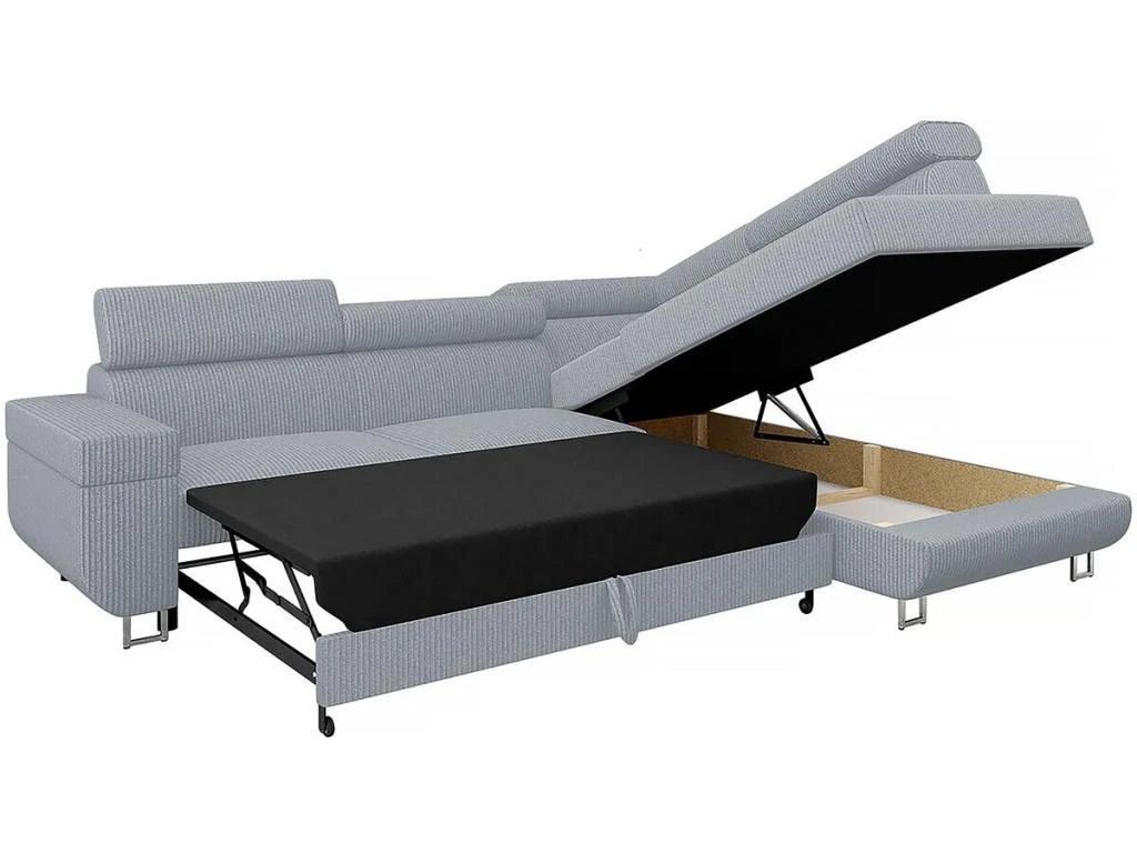 Ce dernier dispose aussi d’un grand coffre de rangement situé sous la méridienne du canapé idéal pour le stockage d’oreillers, couettes, couvertures…