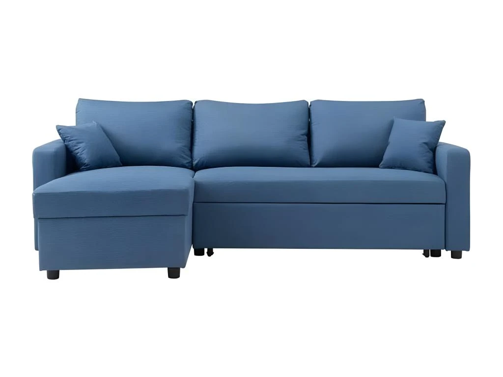 Canapé D’angle Convertible – ERWAN – En Tissu Luxe 5 Places, Bleu Foncé, Angle Gauche (vu De Face)