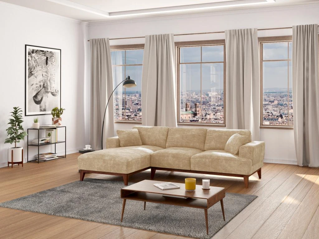 Vous recherchez comment rendre votre intérieur chic ? Optez pour le canapé d’angle JOSEFA. Des pieds en bois, une assise profonde et acceuillante et des coloris très tendances apportent à ce canapé d’angle en tissu tout ce dont il a besoin pour sublimer votre salon.