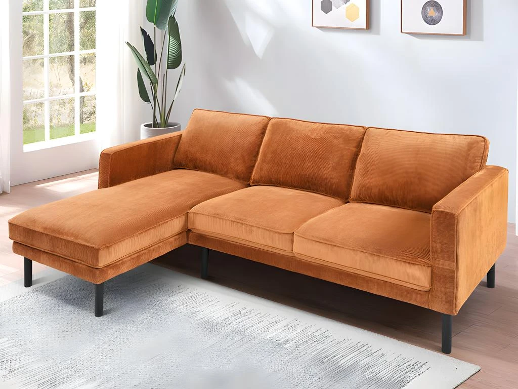 Canapé D’angle Gauche En Velours Côtelé Camel MIKE